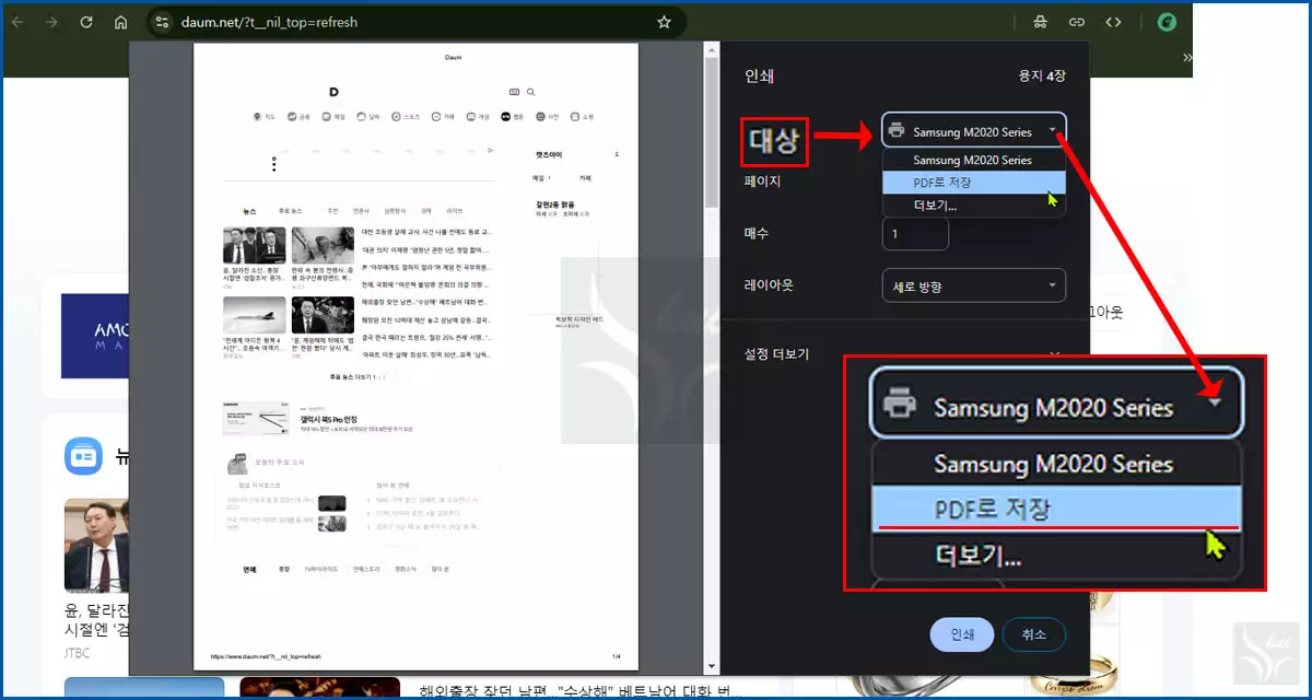 하단으로 'pdf로 저장'이 보일 것이다. 선택하고 인쇄를 클릭하면 저장이 가능하다. 아주 간단하다.