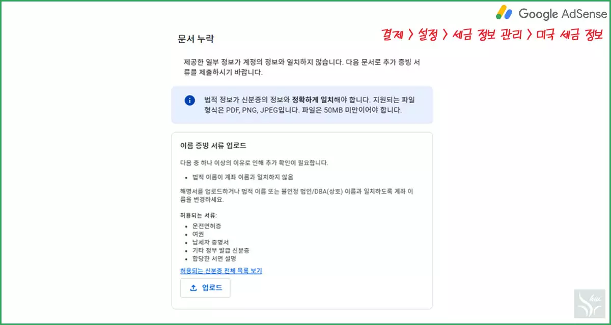 구글 애드센스 미국 세금 '정보 계정 정보 불일치'
