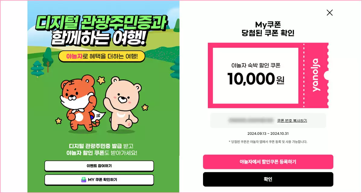 - 디지털 관광주민증+야놀자 쿠폰 이벤트 참여 방법
