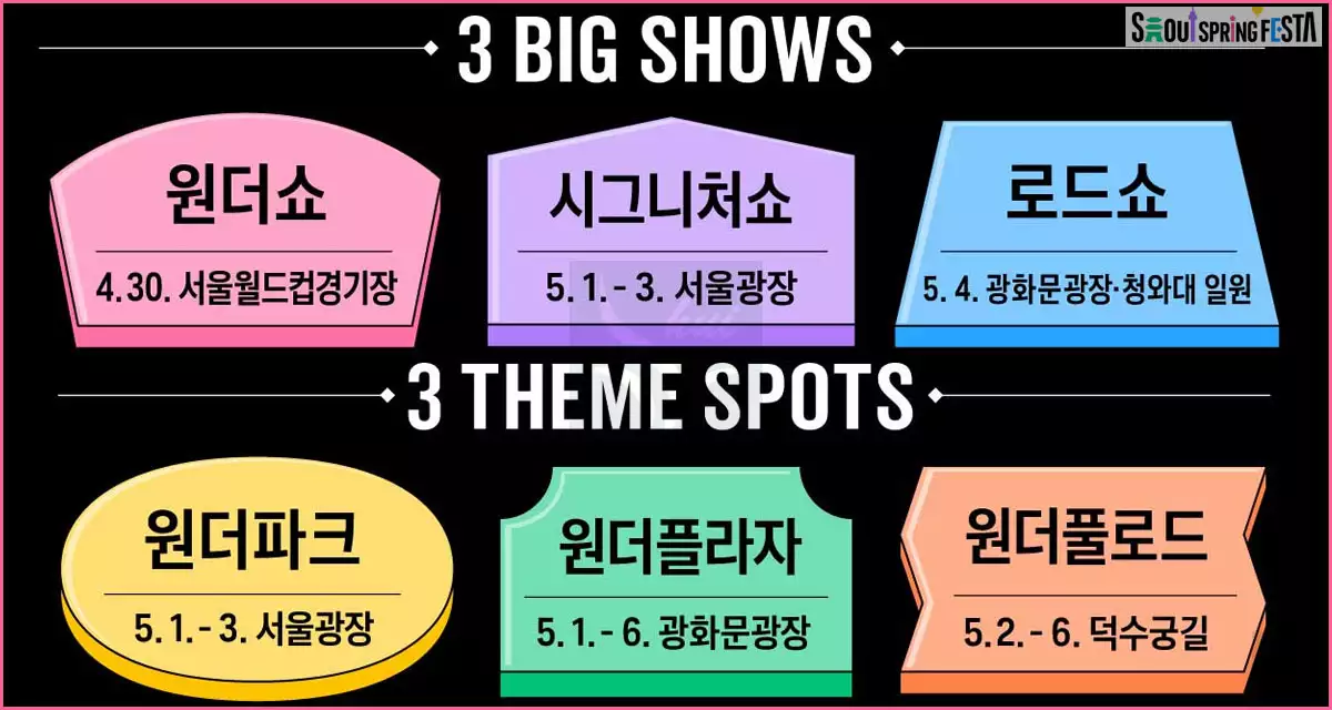 서울스프링페스타는 크게 3 BIG SHOWS와 3 THEME SPOTS으로 나뉜다.