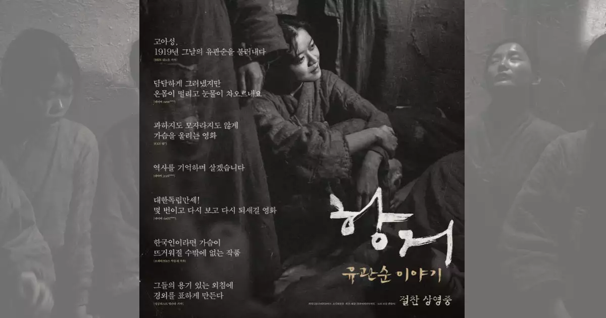 독립영화 하면 독립운동가의 일대기나 활약상을 그려내지만, 영화 항거는 유관순 열사가 서대문 형무소 8호실에 수감된 이후 1년간의 이야기를 그렸다. 투박한 죄수복, 어둡고 습함이 훅 밀려오는 감옥의 음침함, 우리 민족의 고통과 한이 흑백 영상에 잘 표현되었다는 느낌이 들었다. 가슴 아픈 여운이 많이 남는 영화... 유관순 열사의 고통이 고스란히 전달돼 괴로웠던 영화. 그 속으로 들어가 보자.
