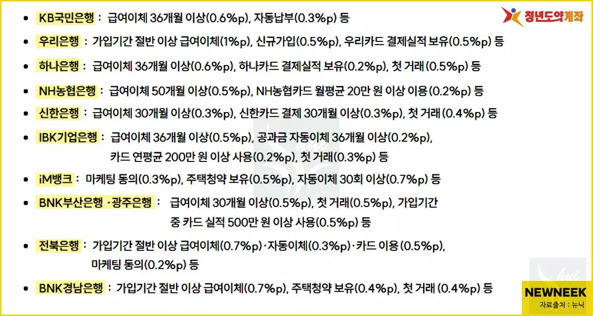 청년도약계좌 은행별 우대금리