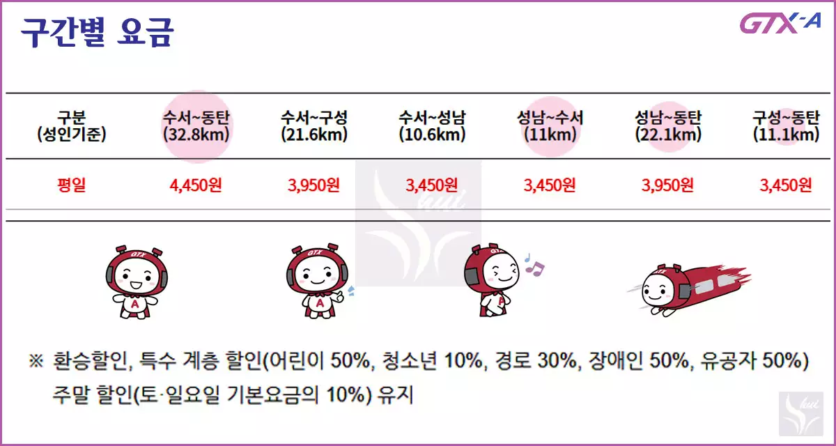 GTX-A 수서동탄 구간별 요금은 평일 성인 기준으로 알아본다.