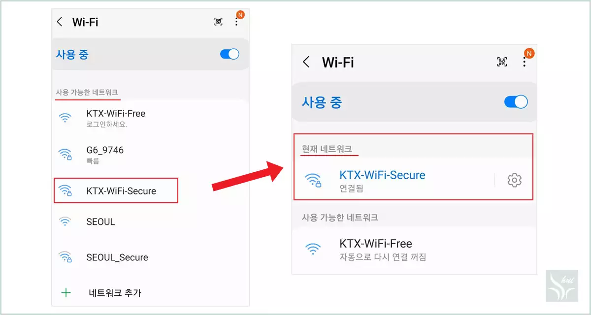 KTX WiFi 연결방법